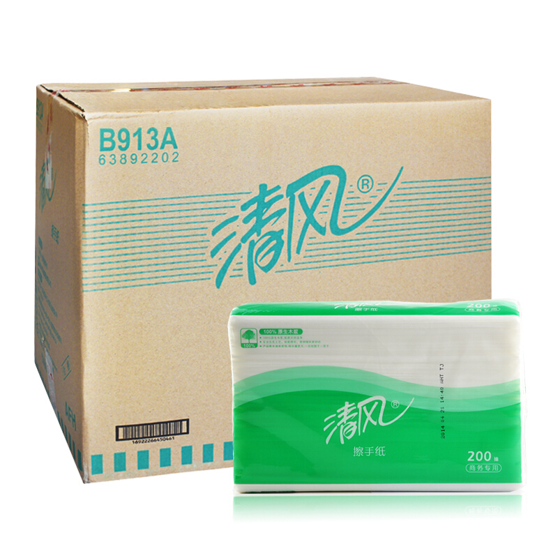 商品标题:清风B913A檫手纸1层3折200抽225mm*230mm20包/箱(包)