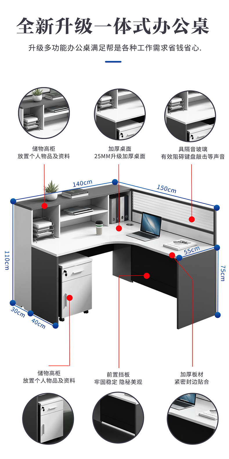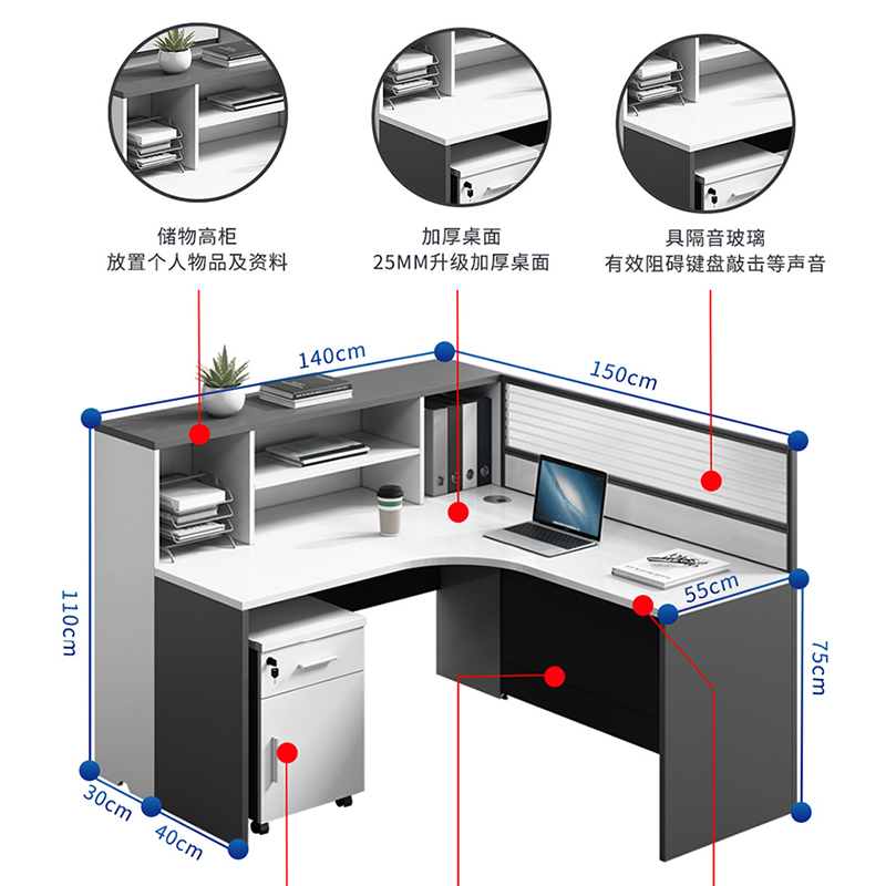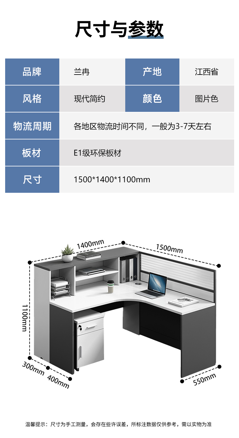商品标题:兰冉LRD-066屏风工位F型单人位含柜椅W1500*D1400*H1100(组