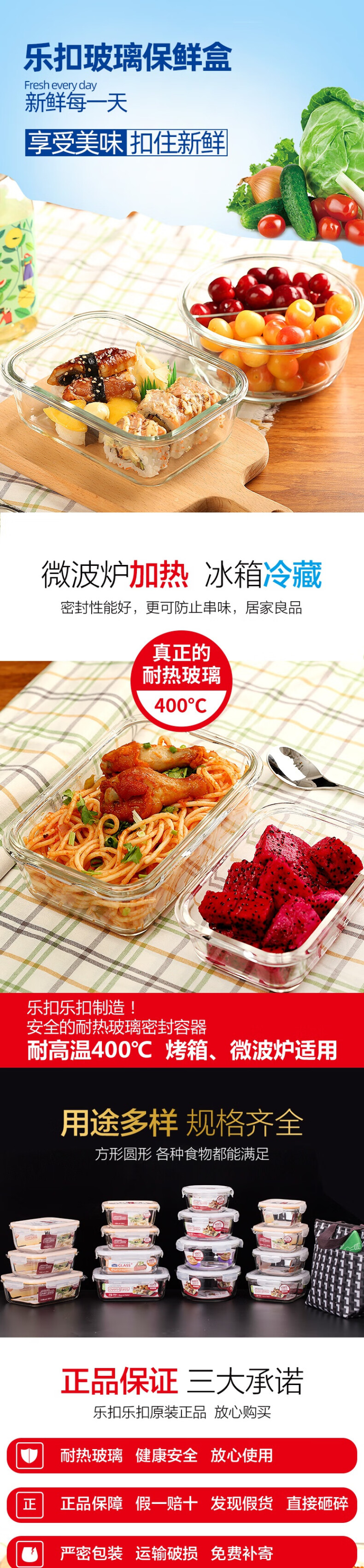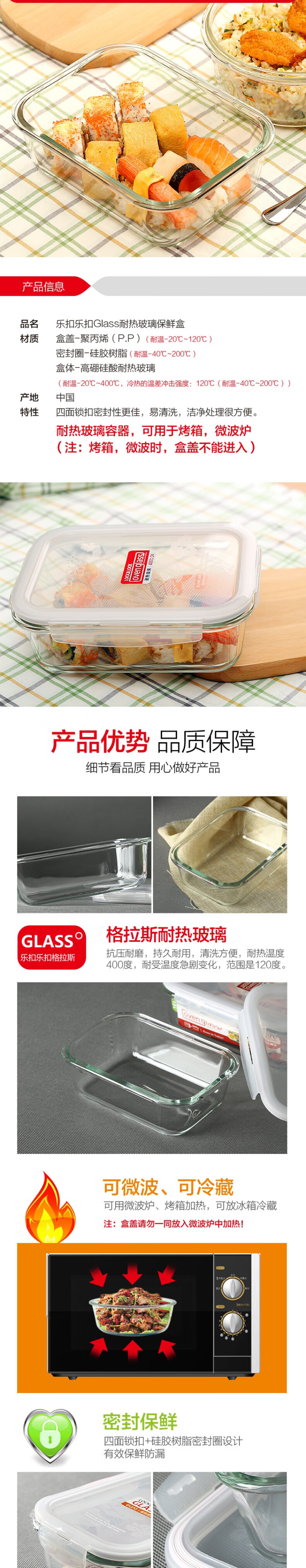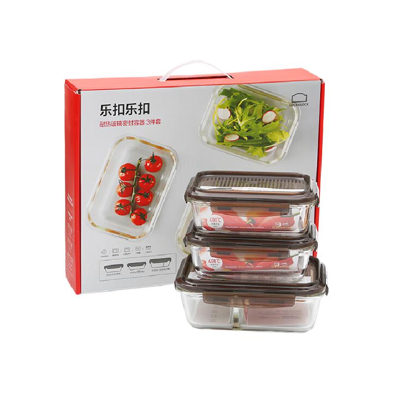 商品标题:乐扣乐扣 保鲜盒LLG991CS101 长方形玻璃饭盒玻璃碗610ml+610ml+930ml(单位:套)