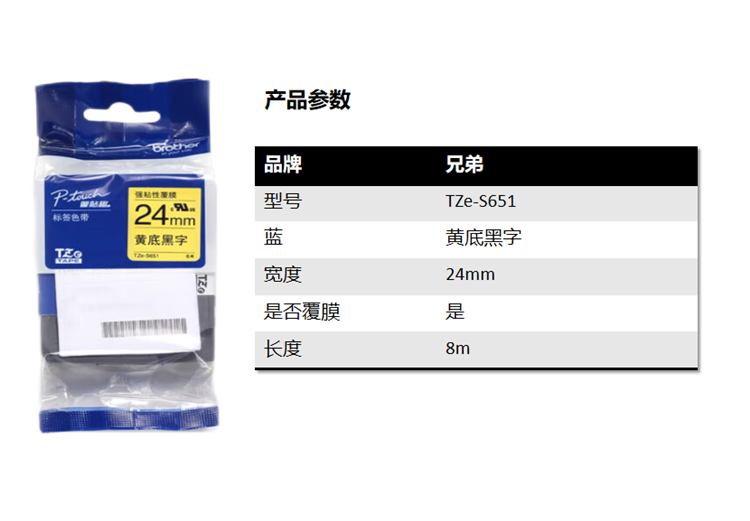 商品标题:兄弟 TZe-S651 标签机色带 (卷) 黄底黑字