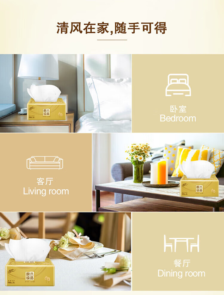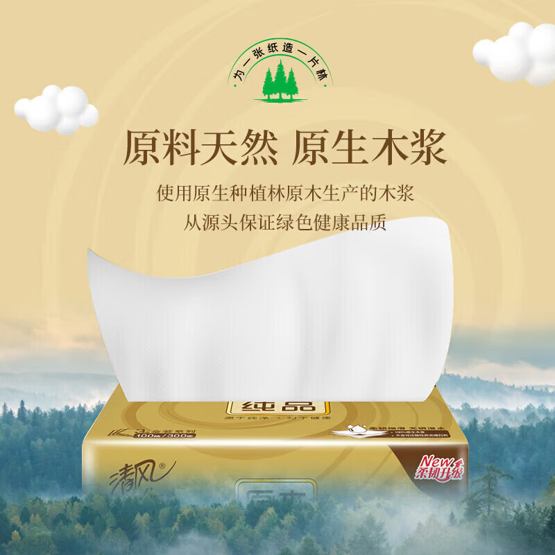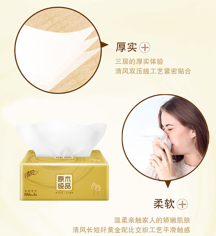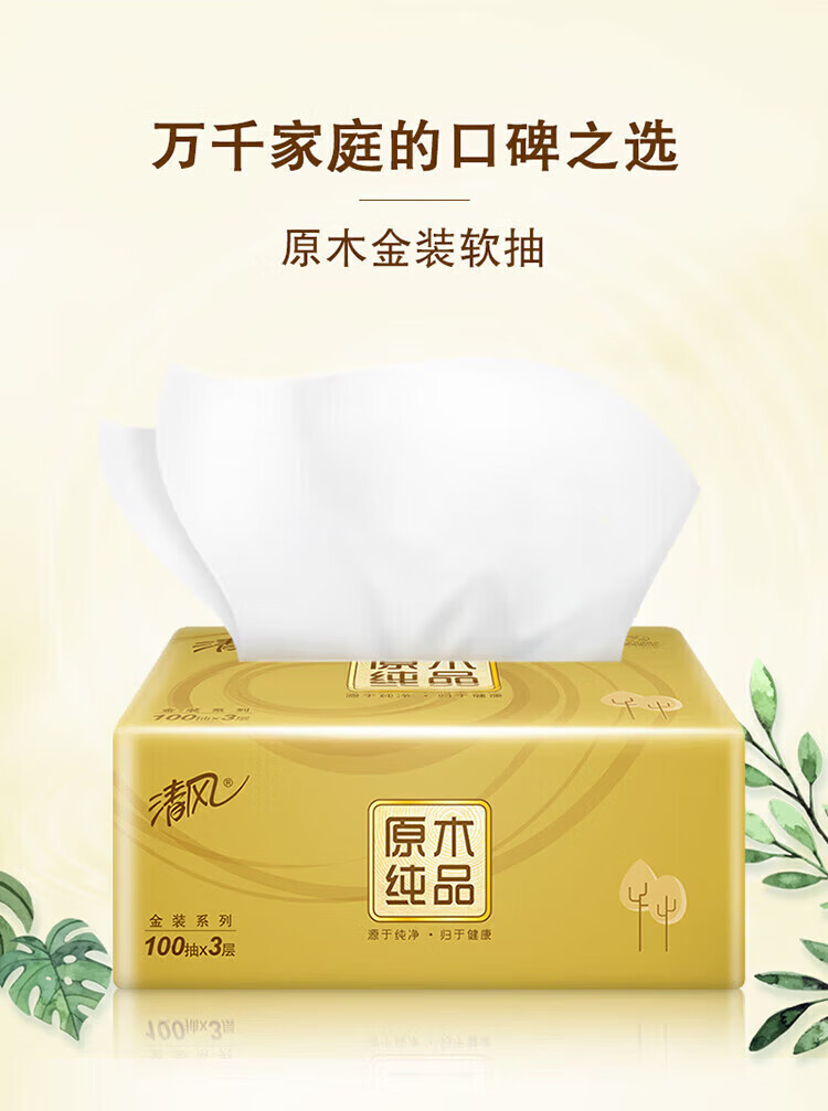 商品标题:清风 原木金装3层100抽纸巾*1箱20包
