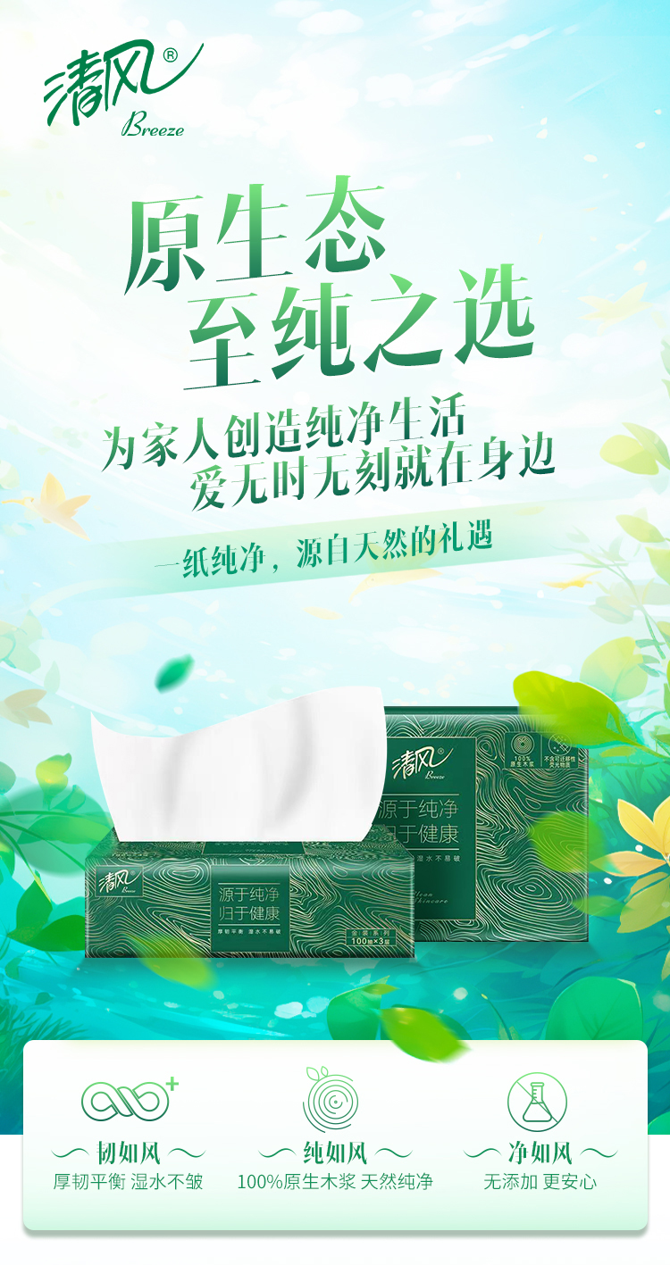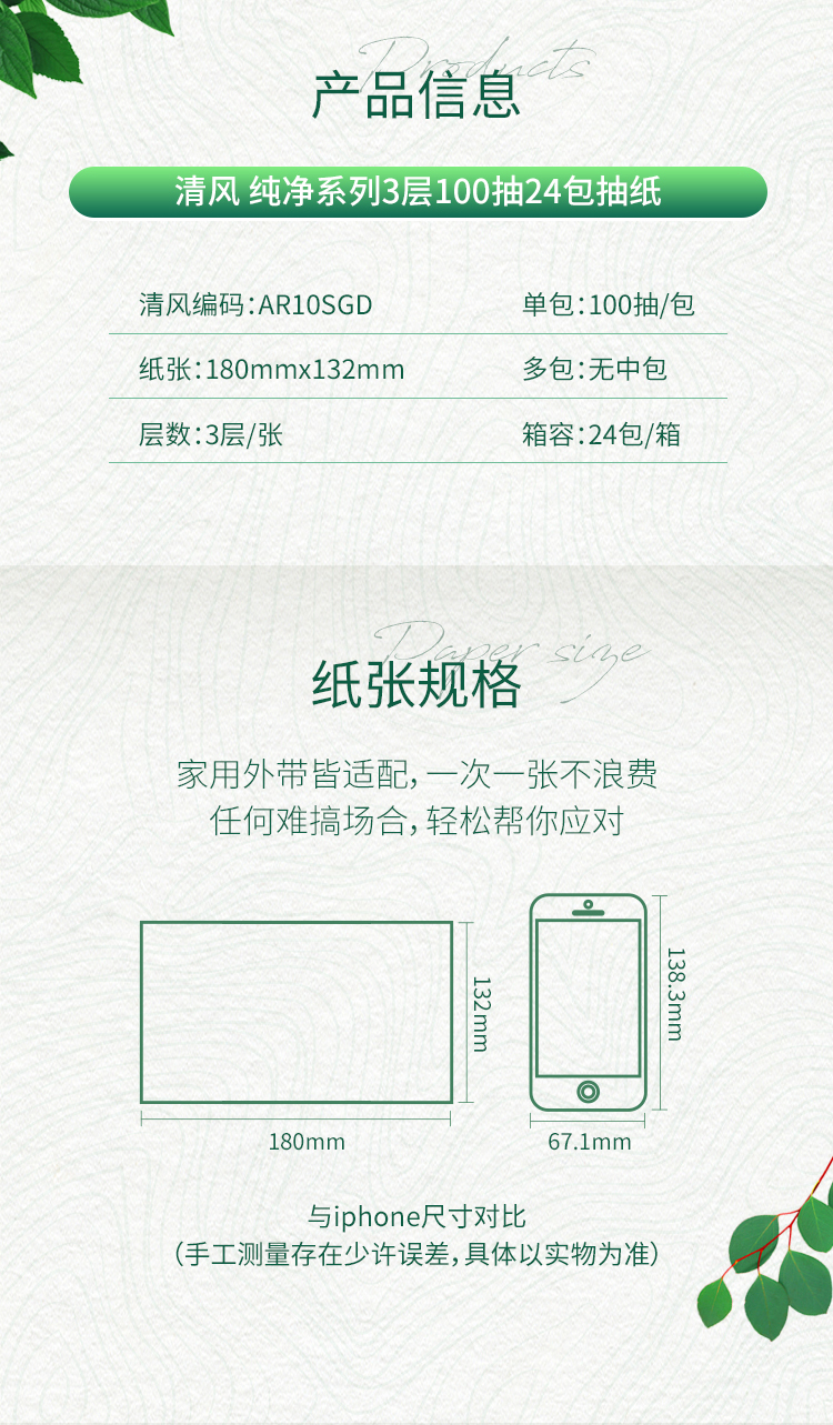 商品标题:清风 纯净系列3层100抽抽纸*1箱24包