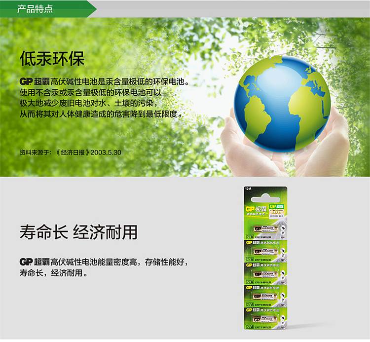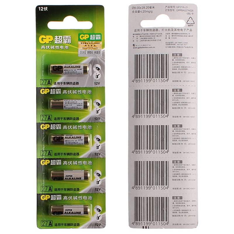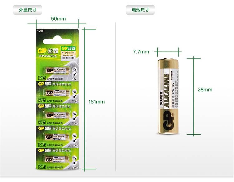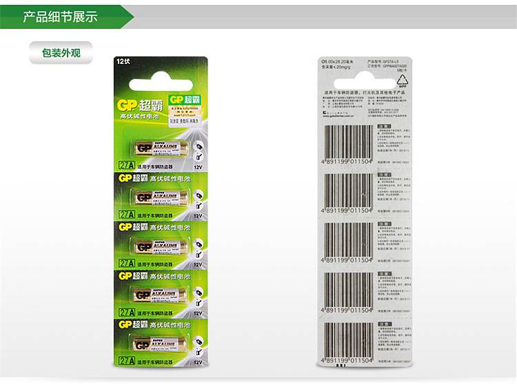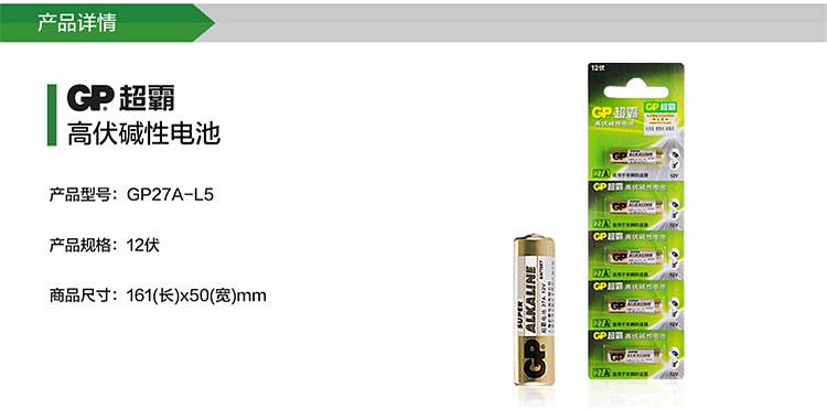 商品标题:超霸GP27AF-2IL5碱性电池5粒可撕装/卡(单位:卡)