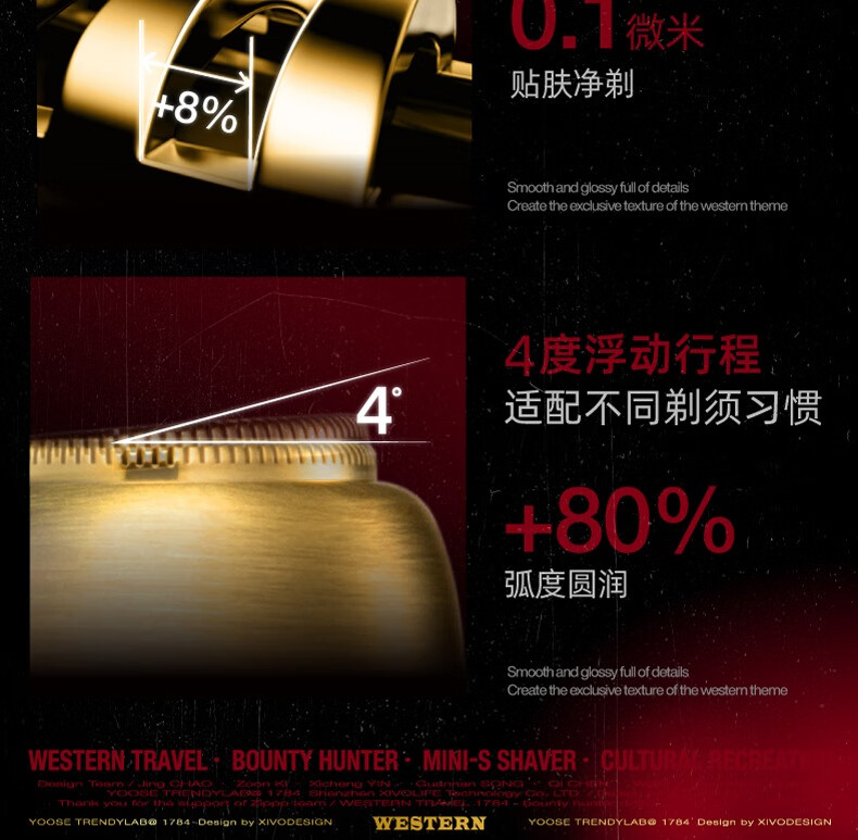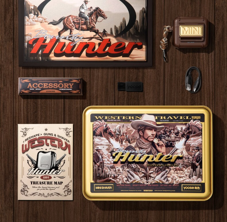 有色(yoose)电动剃须刀便携款合金刮胡刀 赏金猎人款2.0(套)