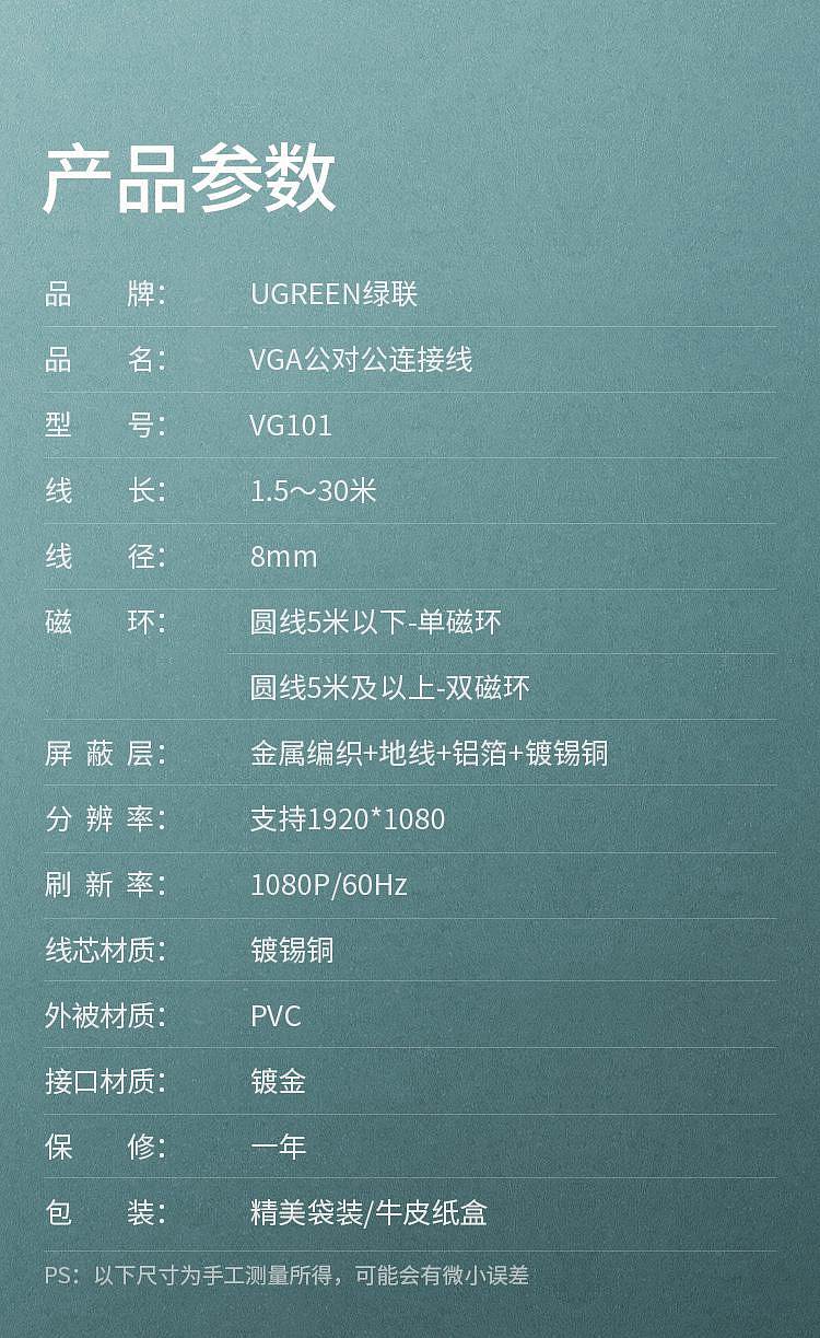 商品标题:绿联 11631 VGA连接线 3M (根)