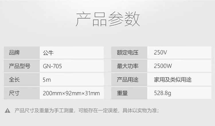 公牛GN-705总控6位漏电保护插排5米(单位:个)(新国标)