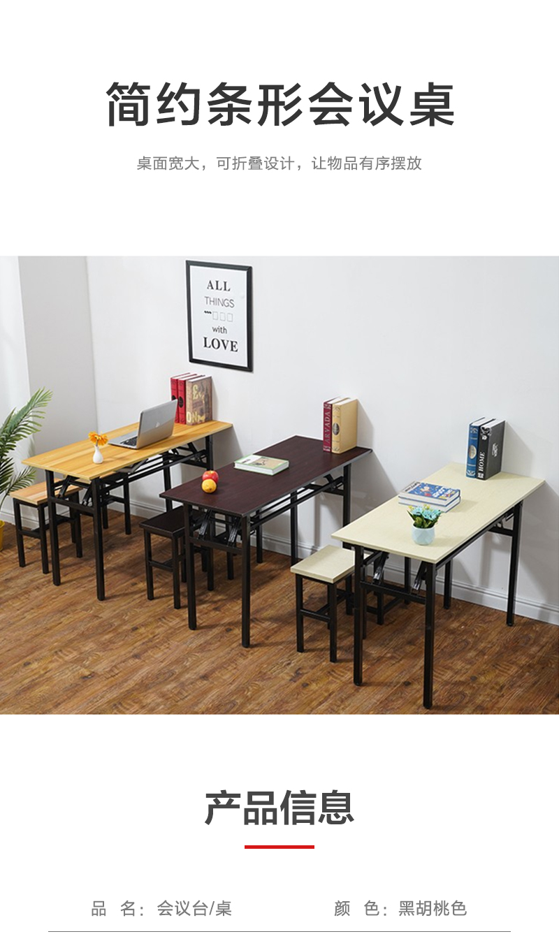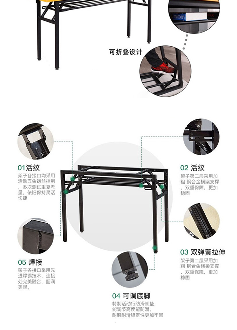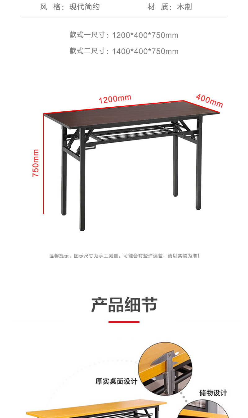 商品标题:企诺YTWTR-545 培训折叠桌课桌条形黑色1200*400*750mm(张)