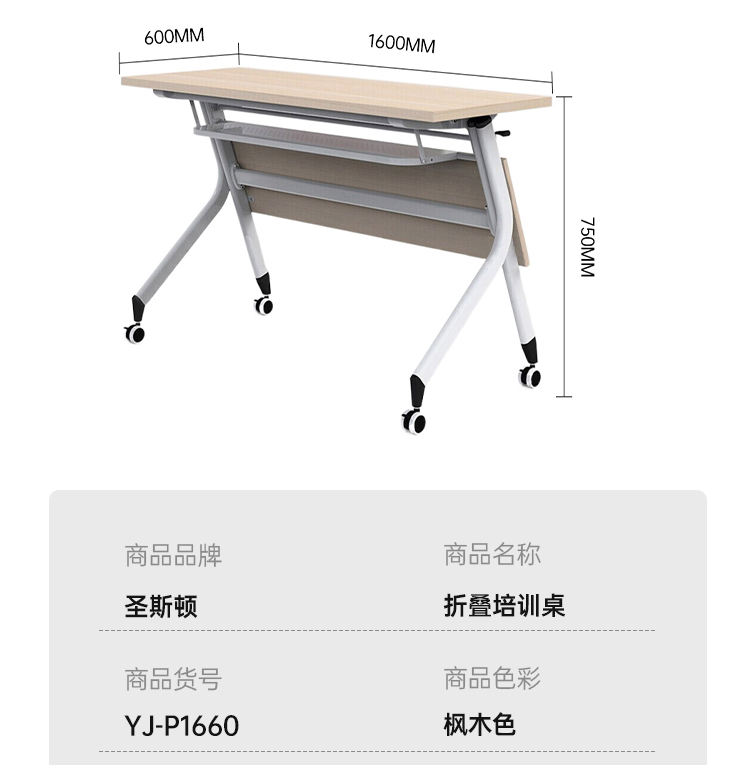 商品标题:圣斯顿YJ-P1660折叠培训桌会议桌1600*600*750mm(张)枫木色