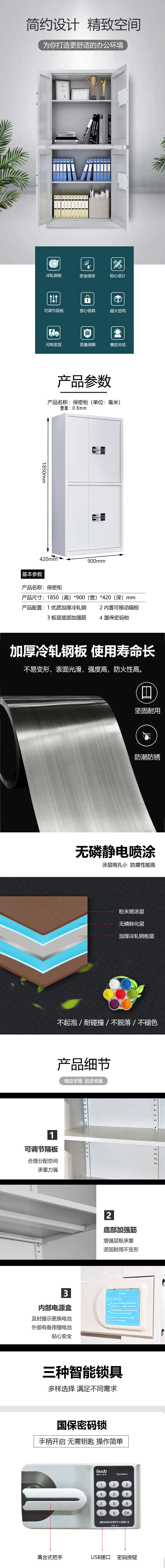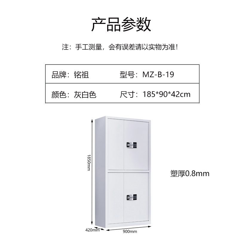 商品标题:铭祖MZ-B-19储物柜电子保密柜密码柜档案柜资料柜钢制办公柜保密文件柜铁皮柜带锁通双节无抽国宝锁 灰白色185*90*42cm(台)塑厚0.8mm