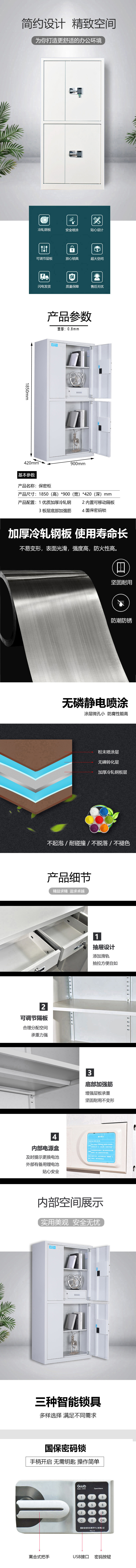 商品标题:铭祖MZ-B-18储物柜电子保密柜密码柜档案柜资料柜钢制办公柜保密文件柜铁皮柜带锁通双节带抽国宝锁 灰白色185*90*42cm(台)塑厚0.8mm