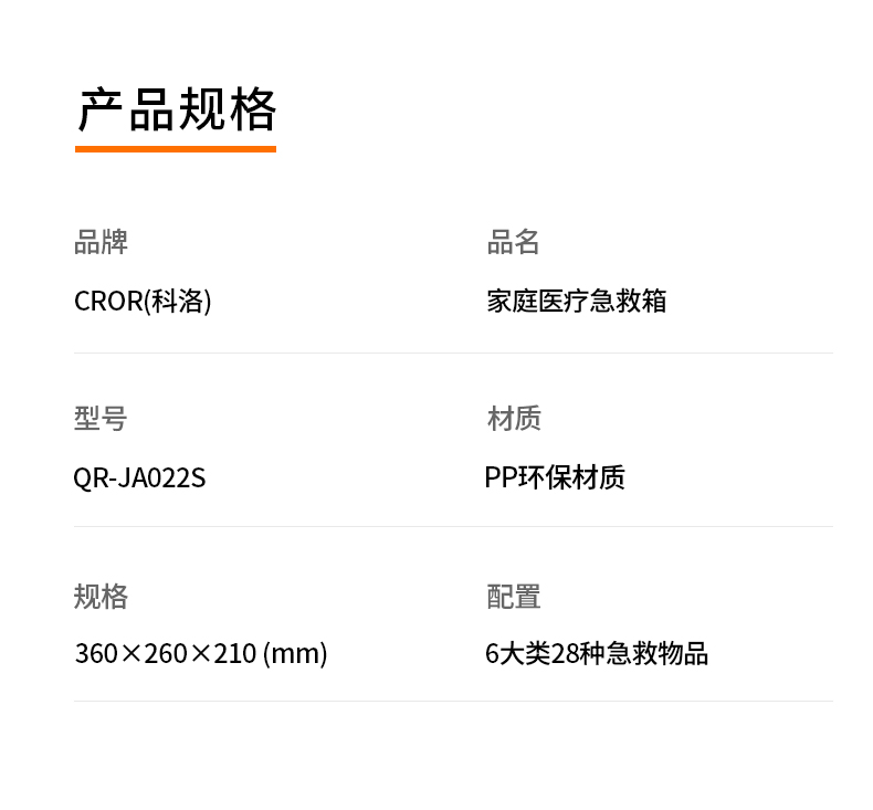 商品标题:科洛(CROR)家庭医疗急救箱 便携手提医疗护理箱 QR-JA022S 325*255*200mm 急救包(单位:套)