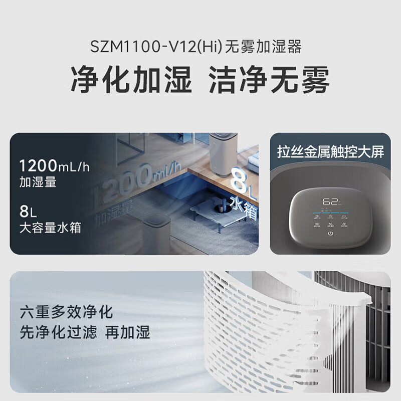 亚都(YADU)无雾加湿器卧室家用办公室空气加湿净化一体机大容量上加水热蒸发纯净母婴适用SZM1100-V12(Hi)(单位:台)