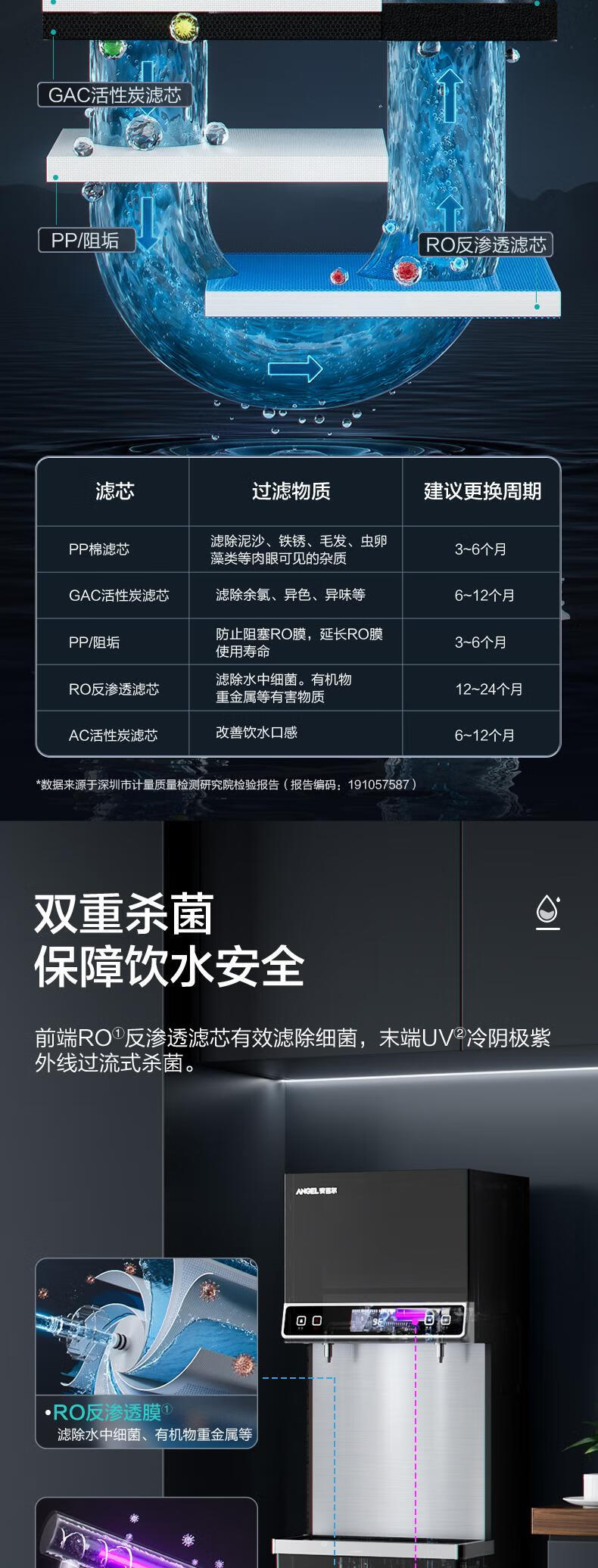 滤芯:活性碳滤芯,PP棉,RO反渗透膜