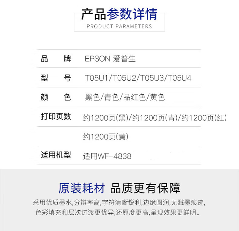 商品标题:爱普生(Epson) T05U1 黑色墨盒 (单位:盒) 黑色