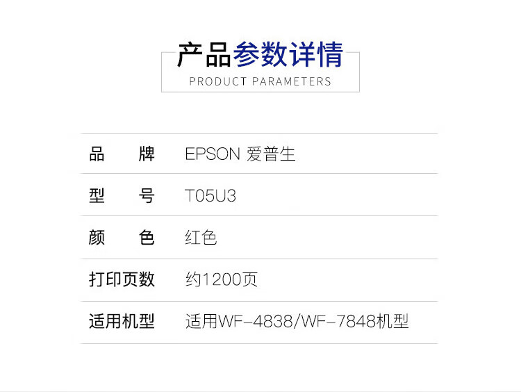 商品标题:爱普生 T05U3 红色墨盒 适用WF-4838/WF-7848(单位:盒)