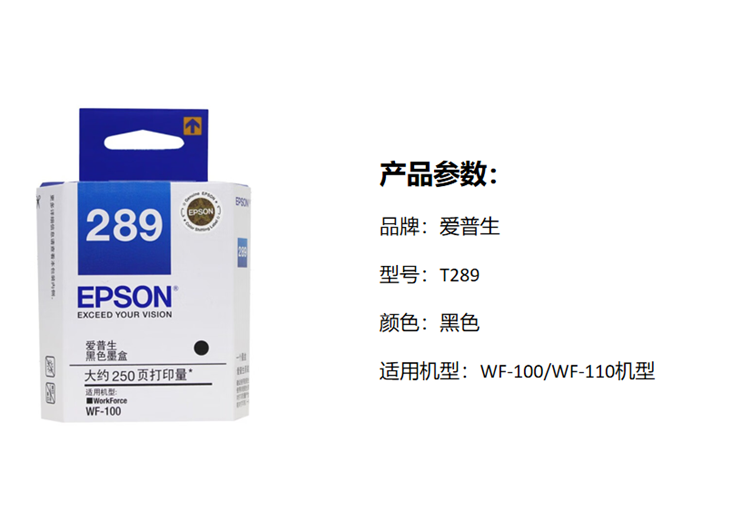 爱普生 T289 墨盒 (单位:盒) 黑色 (适用于:适用于WF-100)