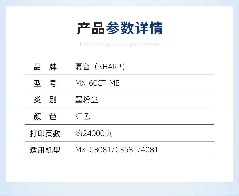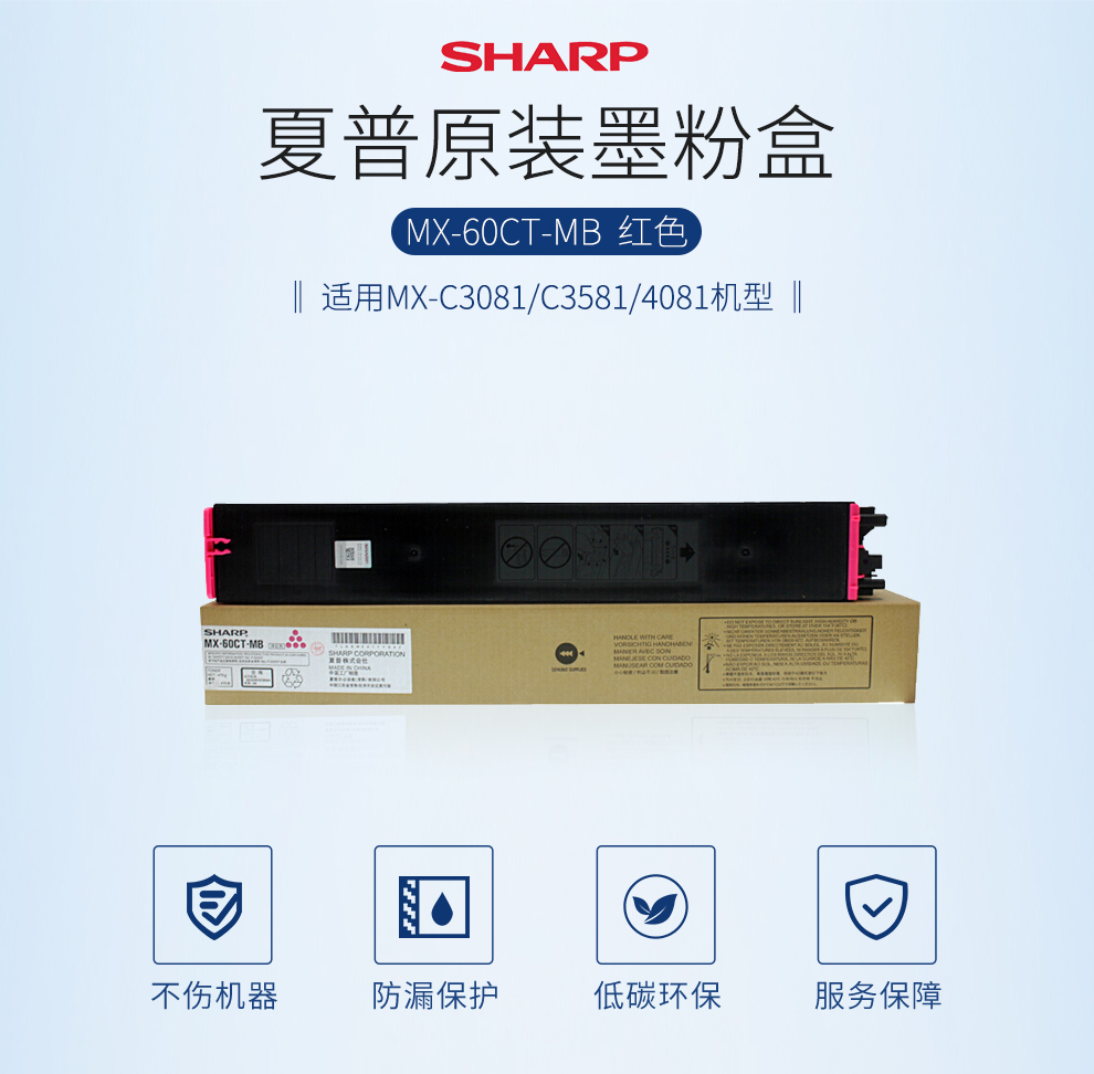 商品标题:夏普(SHARP)MX-60CT-MB 红 原装墨盒 24000页(单位:支)(适用MX-C3081/C3581/4081机型)