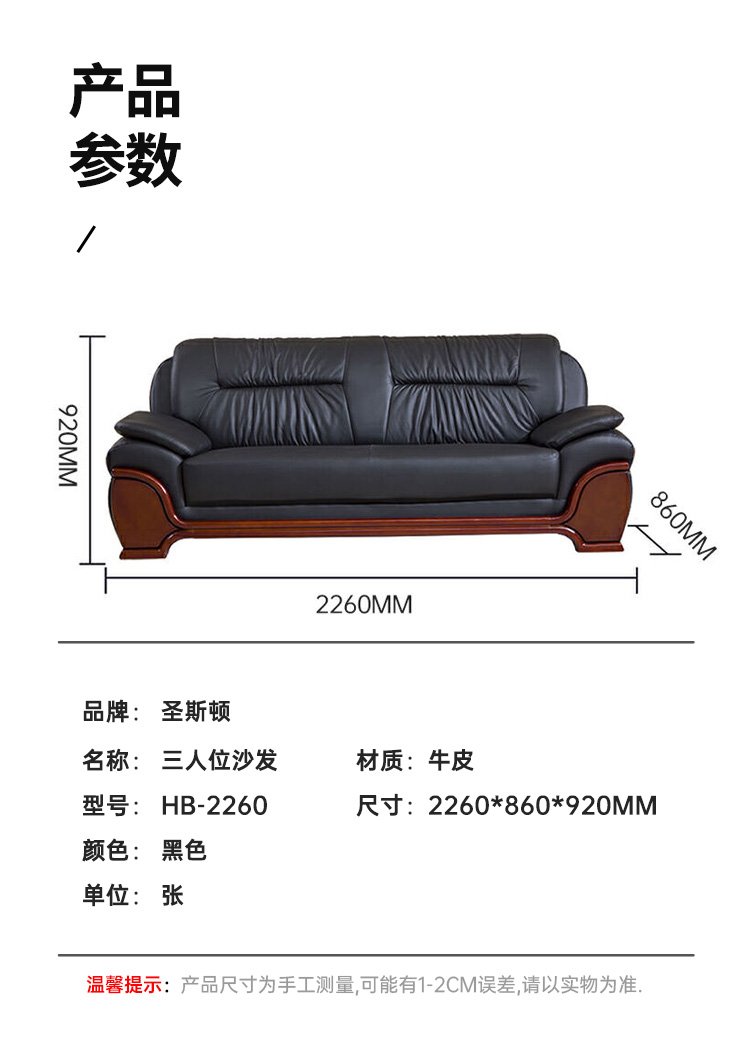 商品标题:圣斯顿HB-2260三人位牛皮沙发2260*860*920mm(单位:张)黑色