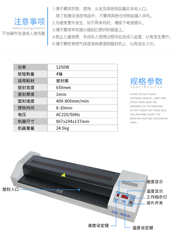 金典(Golden)GD-S650大幅面塑封机1250W(台)