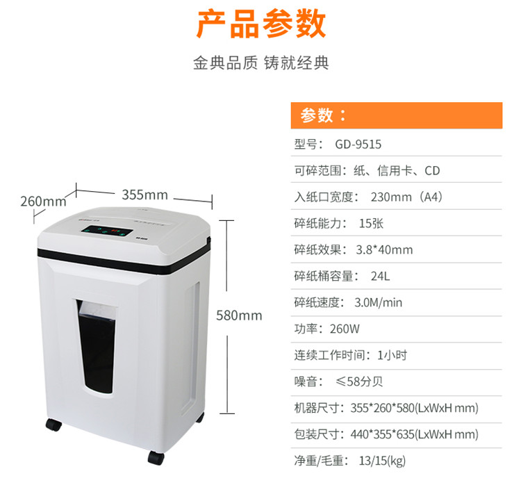 金典GD-9515碎纸机(台)