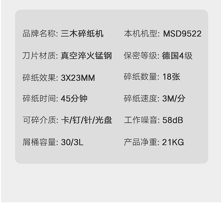 商品标题:三木MSD9522锰钢侠系列碎纸机400*310*686mm(台)