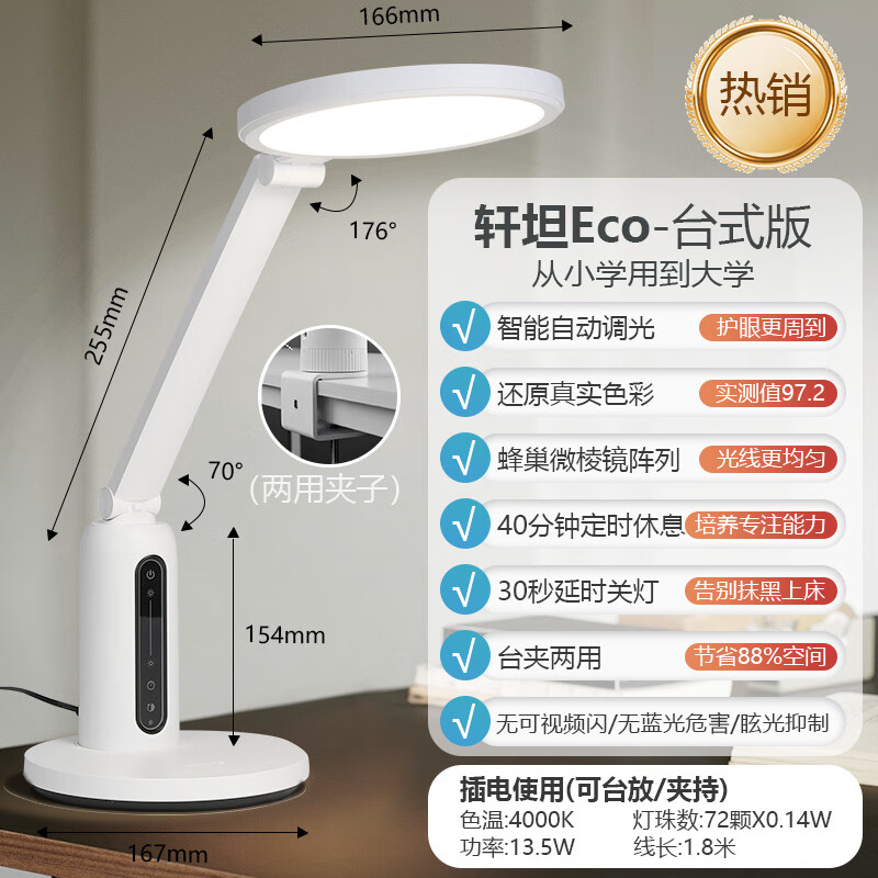 飞利浦(PHILIPS)轩坦Eco版台灯-LED护眼台灯-白色(单位:台)
