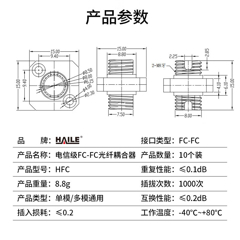 商品标题:海乐(HAILE)HFC 光纤耦合器FC-FC对接头红色网络设备配件(单位:包)