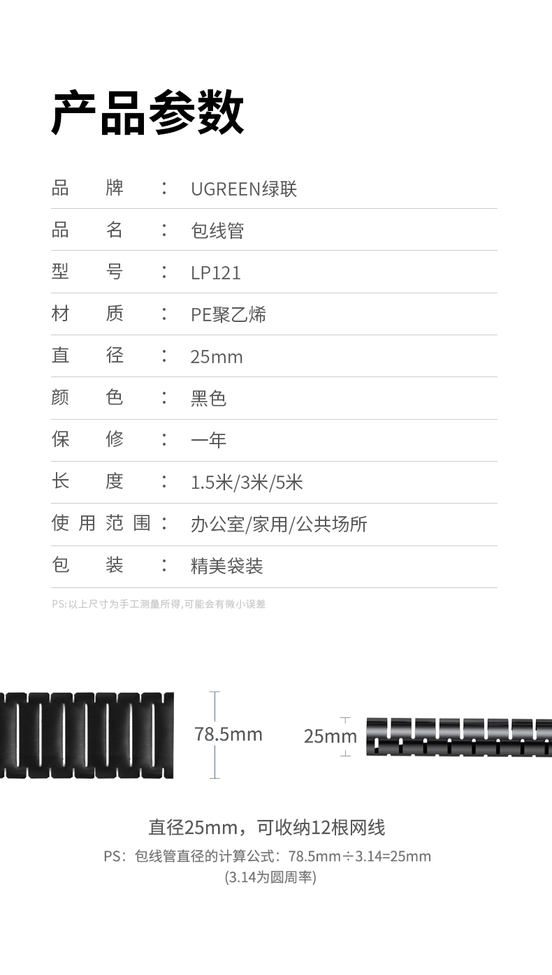 商品标题:绿联30818包线管直径25mm/1.5米(条)