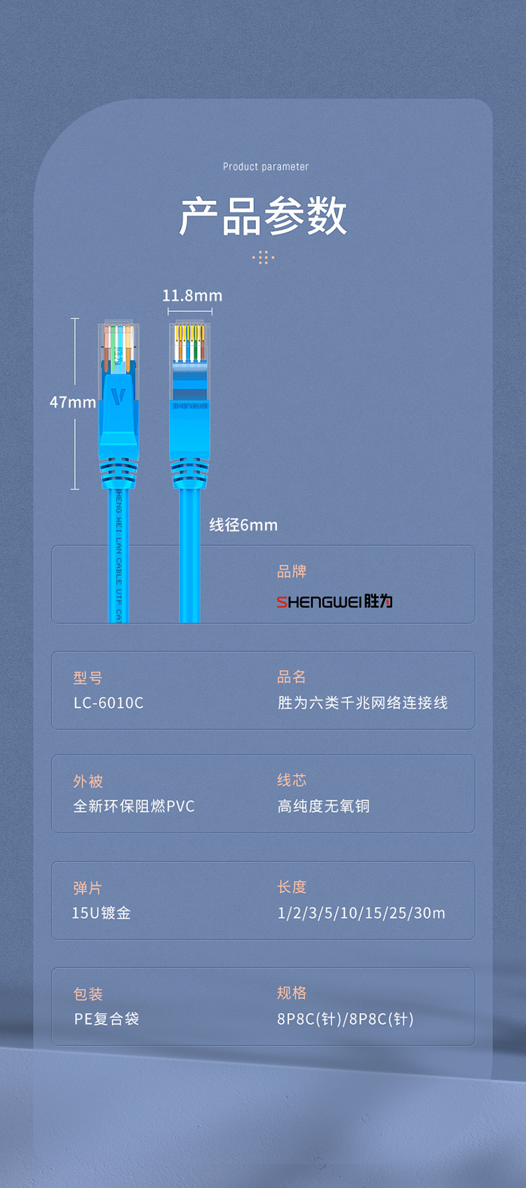 胜为LC-6150C六类千兆网线无氧纯铜15米(根)