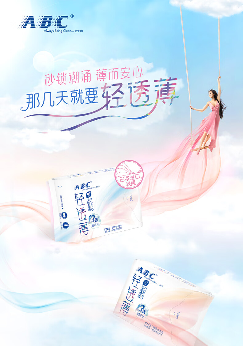 商品标题:ABC日用K13超级薄棉柔卫生巾240mm*8片(单位:包)