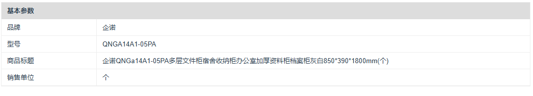 商品标题:企诺QNGa14A1-05PA凭证柜加厚灰白850*390*1800mm(个)