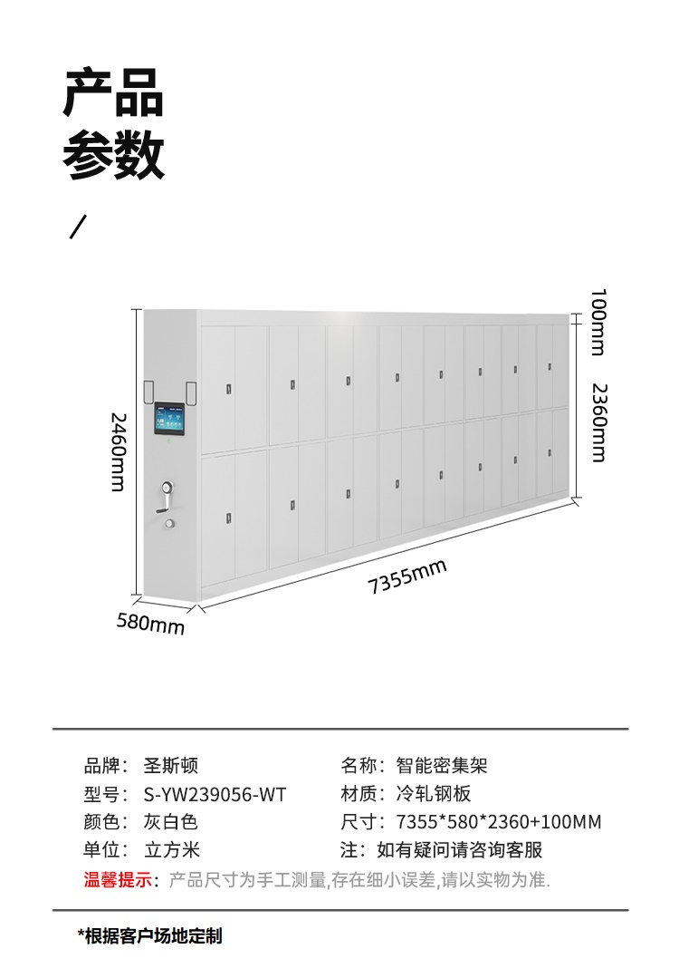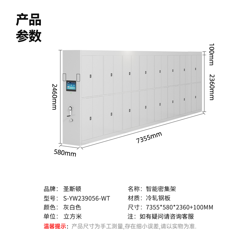 商品标题:圣斯顿S-YW239056-WT智能密集架1列8组(根据客户场地定制)(立方米)白色