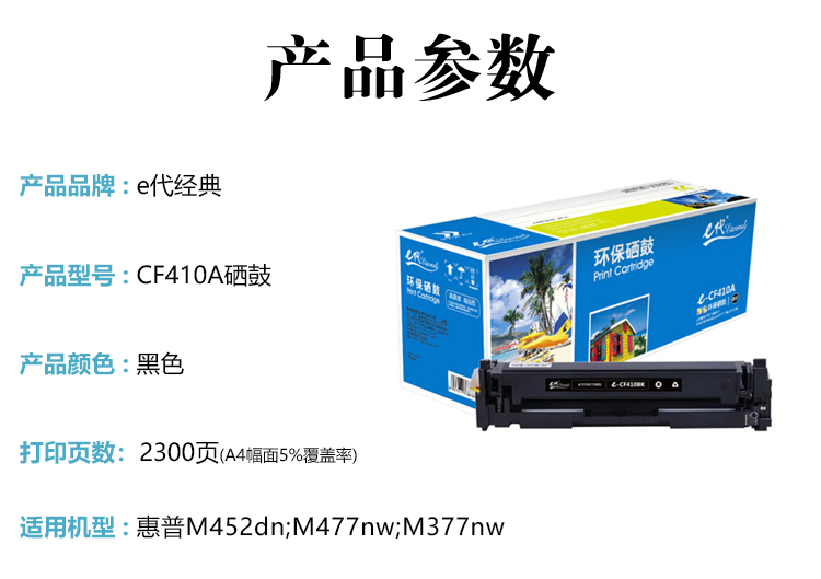 e代经典 HPCF410A硒鼓(鼓粉一体)黑色单支装(适用HP 惠普M452dn M477nw M377nw彩色打印机硒鼓(鼓粉一体)黑色单支装)黑色 打印页数:2300页(单位:支)
