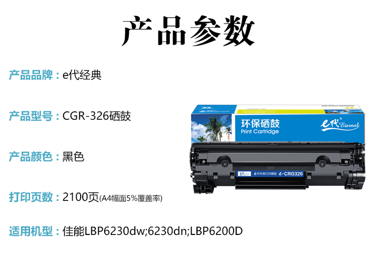 e代经典 CRG-326硒鼓(鼓粉一体)黑色单支装 (适用佳能LBP6230dw LBP6230dn LBP6200d) 打印页数:2100页(单位:支)