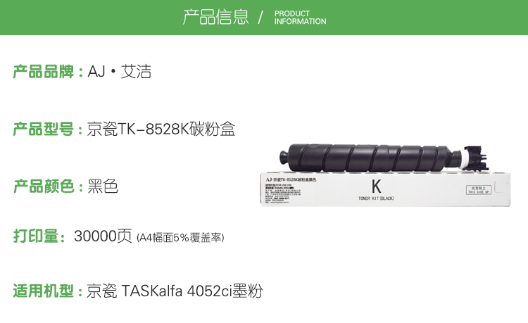 艾洁(AJ) TK-8528K夏普粉盒黑色适用夏普MX-C3081R C3581R C4081R C2621R C3121R打印机碳粉 30000页(支)