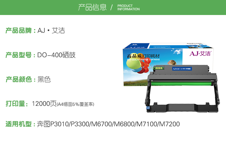 艾洁(AJ) DO-400奔图硒鼓适用于奔图(PANTUM)P3010/P3300/M6700/M6800/M7100/M7200系列12000页(支)