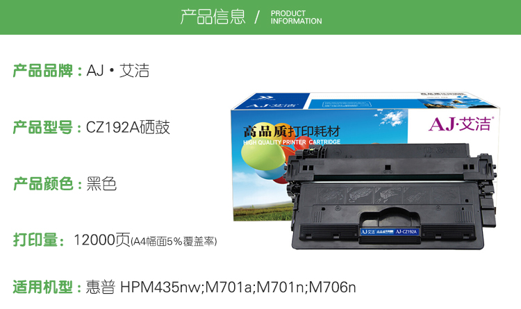 艾洁 CZ192A硒鼓(鼓粉一体)黑色单支装 (适用惠普CZ192A M435nw M701 M706 HP93A硒鼓(鼓粉一体)黑色单支装 )打印页数:12000页(单位:支)