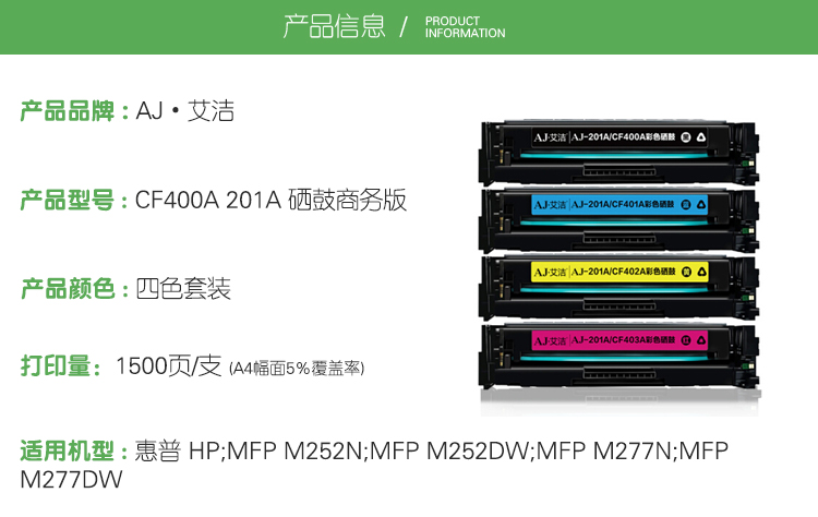 商品标题:艾洁HPCF400A(201A)硒鼓彩商务版四色套装(套)