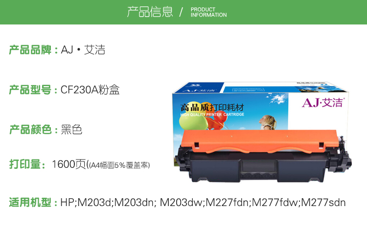 商品标题:艾洁HPCF230A粉盒黑(支)