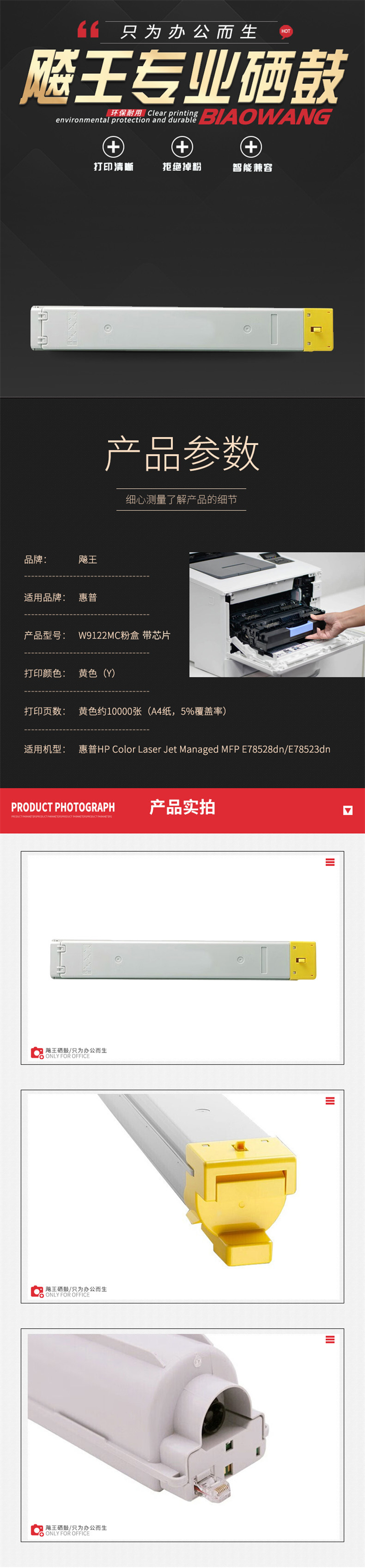 商品标题:飚王兼容W9122MC墨粉盒(鼓粉分离)黄色10000页(只)