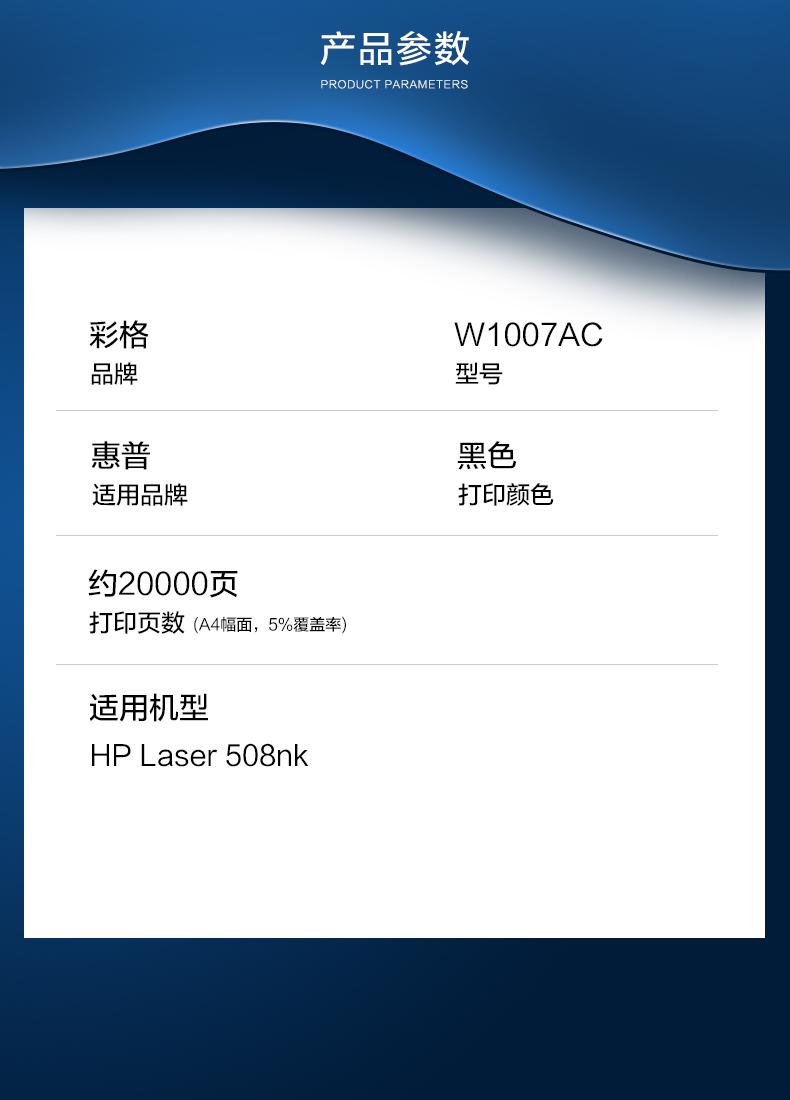 名称:彩格 硒鼓 W1007AC 20k (黑色) 标准版-带芯片 适用惠普HP Laser508nk