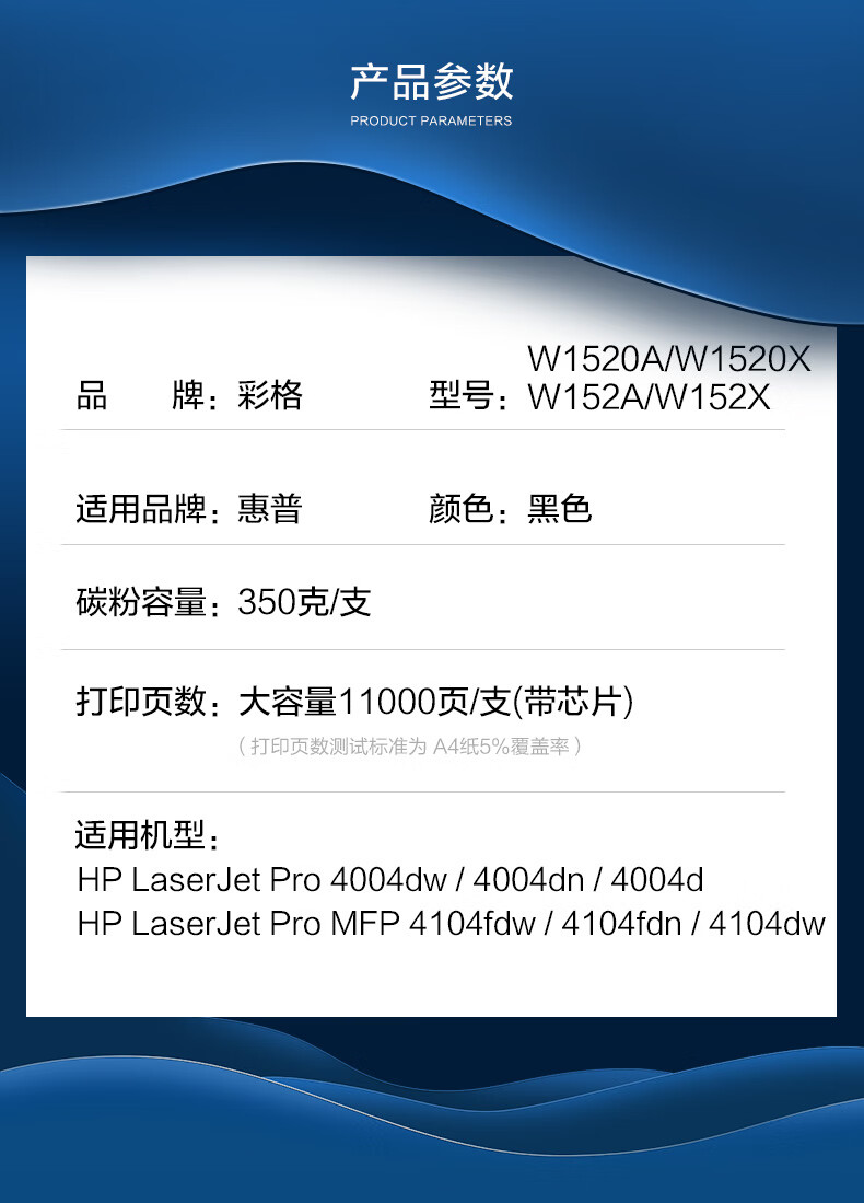 商品标题:彩格适用惠普4004d硒鼓 w152X硒鼓hp 4004dn 4004dw打印机硒鼓4104dw 4104fdn 4104fdw w1520a硒鼓墨盒大容量带芯片(打印页数:11000页)(单位:支)