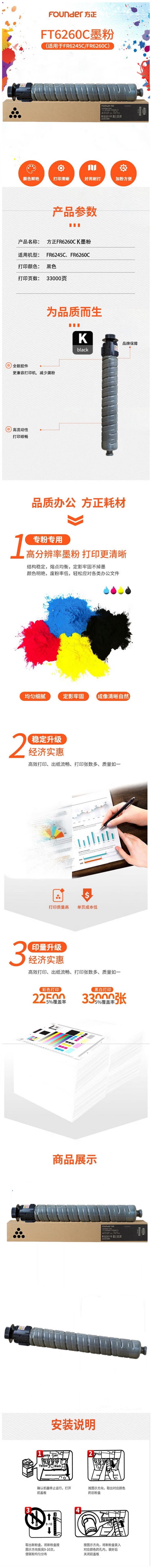 商品标题:方正FT6260CK型适用于FR6245C/FR6260C复合机原装墨粉盒(支)