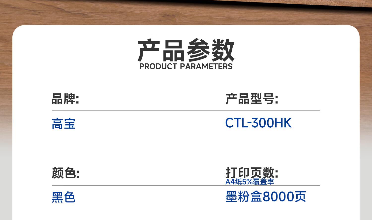 商品标题:高宝兼容CTL-300HK粉盒(鼓粉分离)黑色单个装打印量:8000页(个)