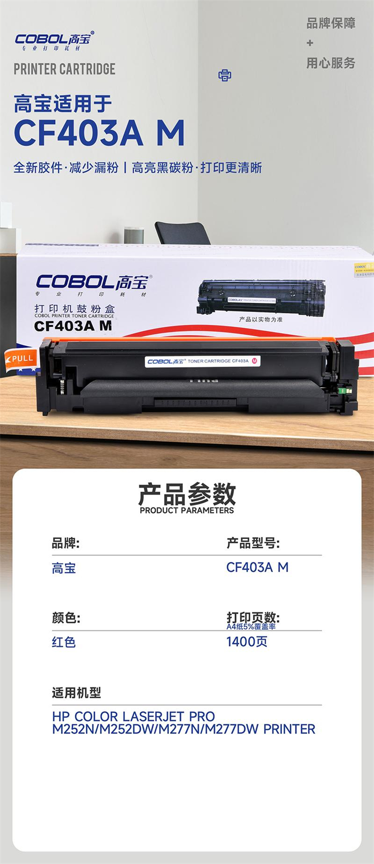 商品标题:高宝兼容硒鼓CF403A M红色单支装(适用惠普M252n/M252dw/M277n/M277dw打印机)打印量:1400页(单位:个)