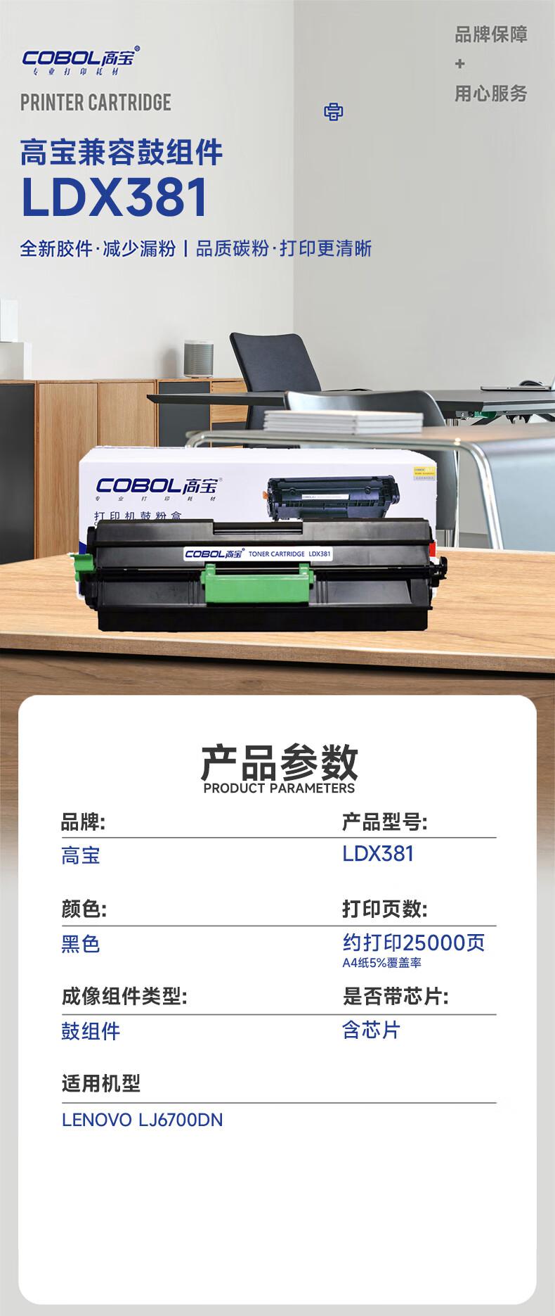 商品标题:高宝兼容LDX381鼓组件(鼓粉分离)黑色单只装打印量:25000页(只)
