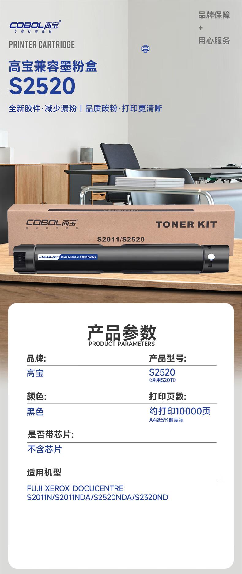 商品标题:高宝兼容S2520/S2011硒鼓(鼓粉一体)黑色单个装打印量:10000页(个)
