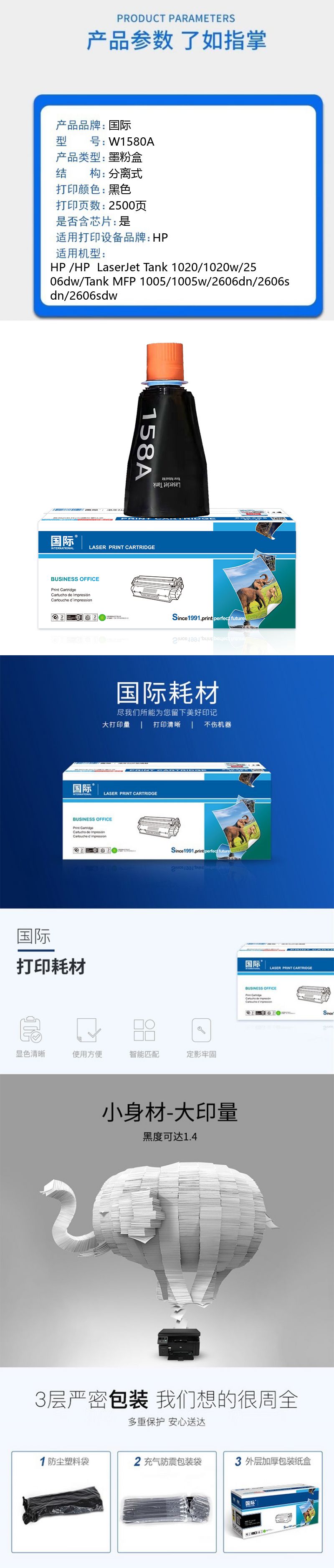 国际兼容W1580A粉盒(鼓粉分离)黑色单支装(适用 HP /HP LaserJet Tank 1020/1020w/2506dw/Tank MFP 1005/1005w/2606dn/2606sdn/2606sdw)打印页数:2500页(单位:支)
