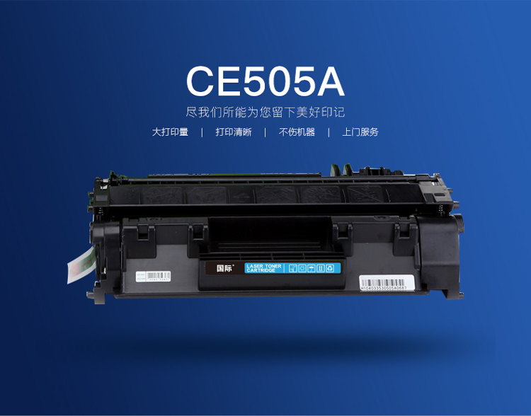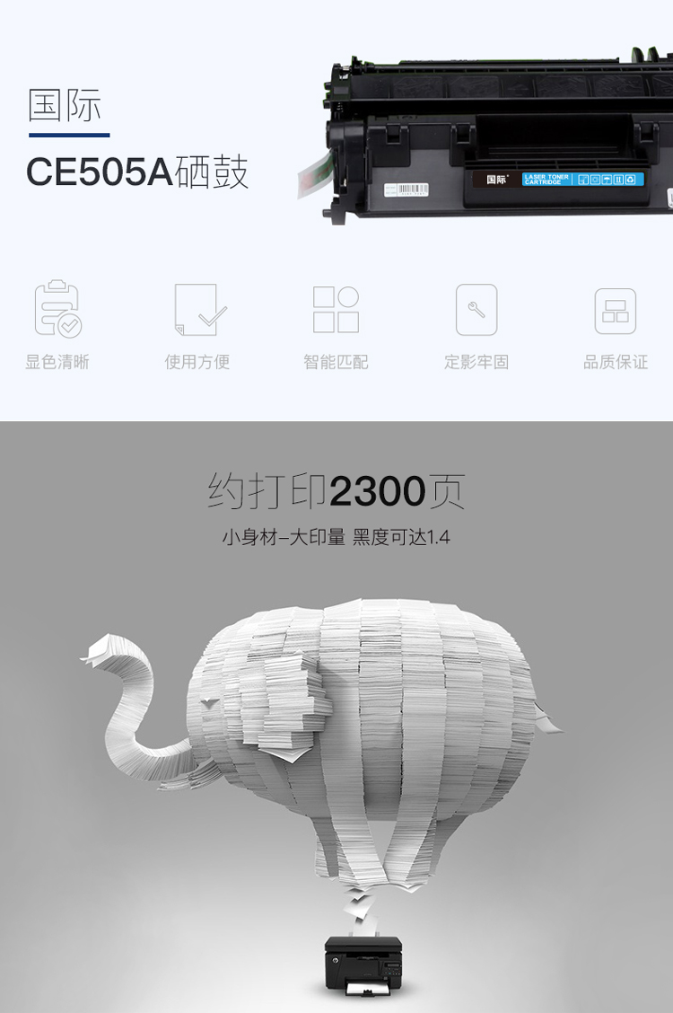 商品标题:国际兼容CE505A硒鼓(鼓粉一体)黑色单支装(适用于惠普 HP P2035/P2035n/P2055d/P2055dn/佳能6300/6650/5870DN)打印页数:2300页(单位:支)