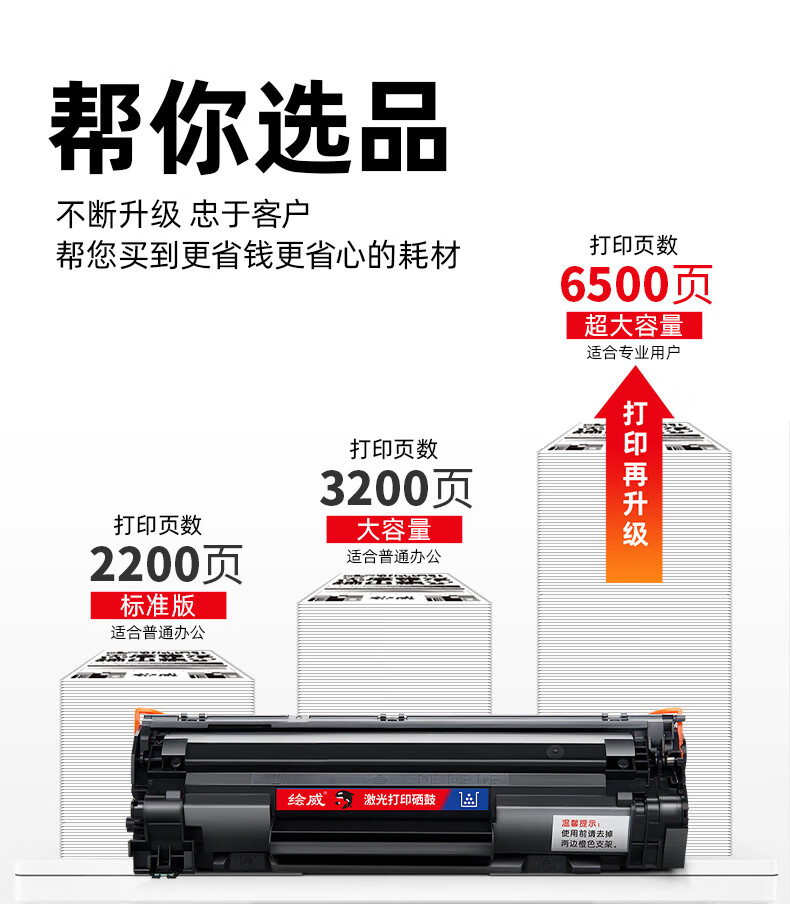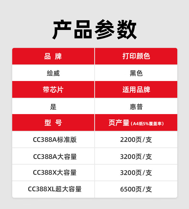 绘威兼容CC388A硒鼓 鼓粉一体 黑色3支装 适用惠普hp1108 P1007 P1008 P1106 M126 M128fw M1136 M1213nf M1216nfh 打印页数:6600页(单位:套)